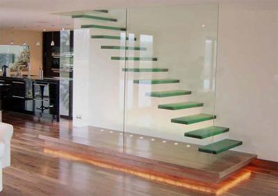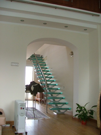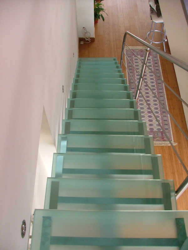 Primer modela staklenih stepenica postavljenog u enterijer stambenog prostora.